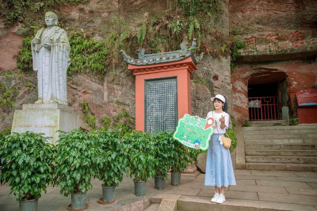 海师洞原是一座东汉时期的崖墓遗址。相传,第一代主持开凿大佛的唐代高僧海通就住在这里。海师洞洞深10米,洞额“海师洞”三字,出自清代四川按察使顾光旭手书。洞口这尊海通 “抉目捧盘”的雕像,讲述的则是这位高僧传奇的故事。
