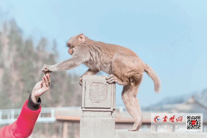 和念情谷里的猕猴互动,是东沟游玩的特色项目。图/王鹏