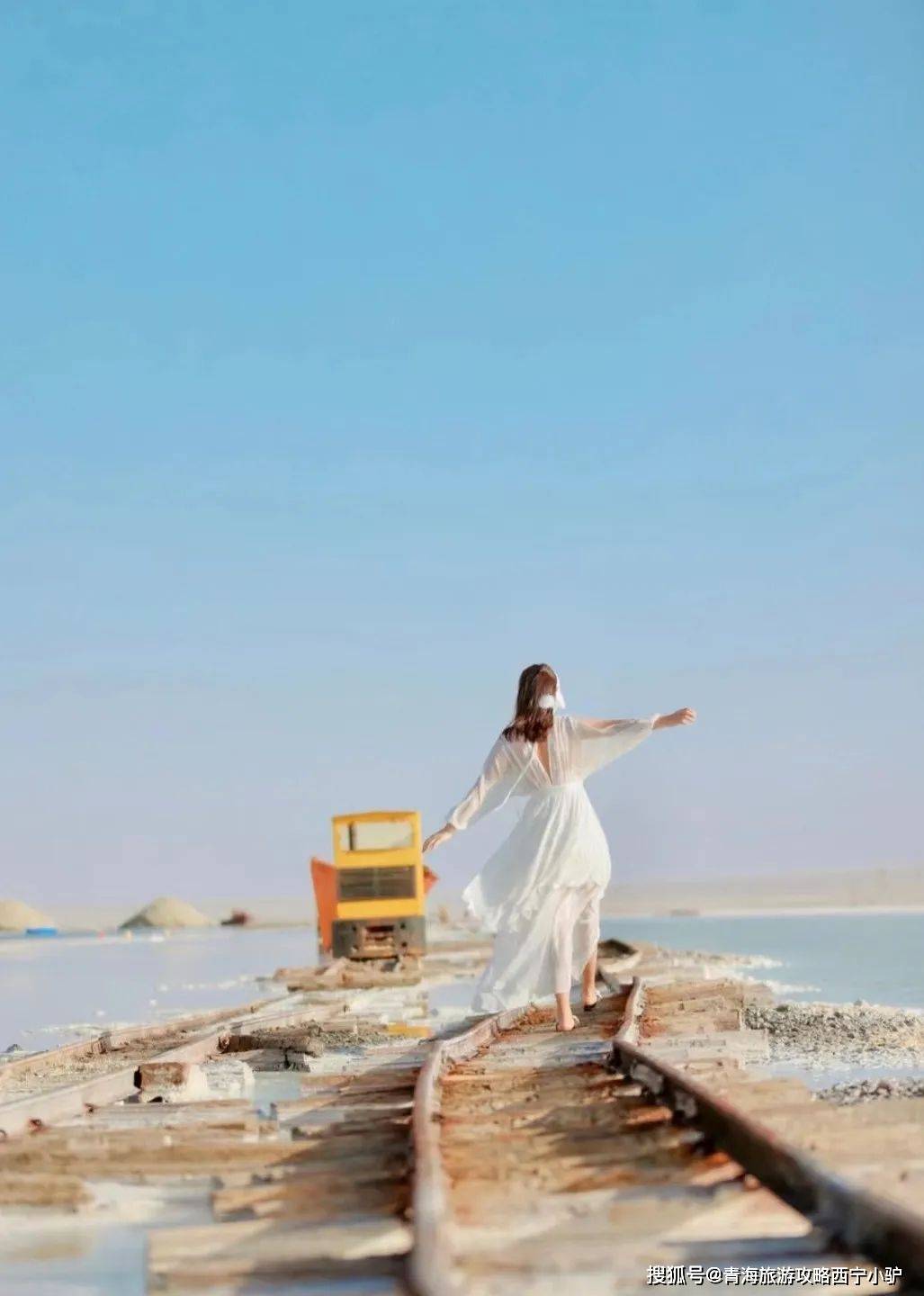 坐着小火车,沿着铁轨步入盐湖深处,沿途比“千与千寻”的小火车还要动漫。可以在盐湖里踩水游玩,也可以穿着鲜艳的衣服打卡拍照。