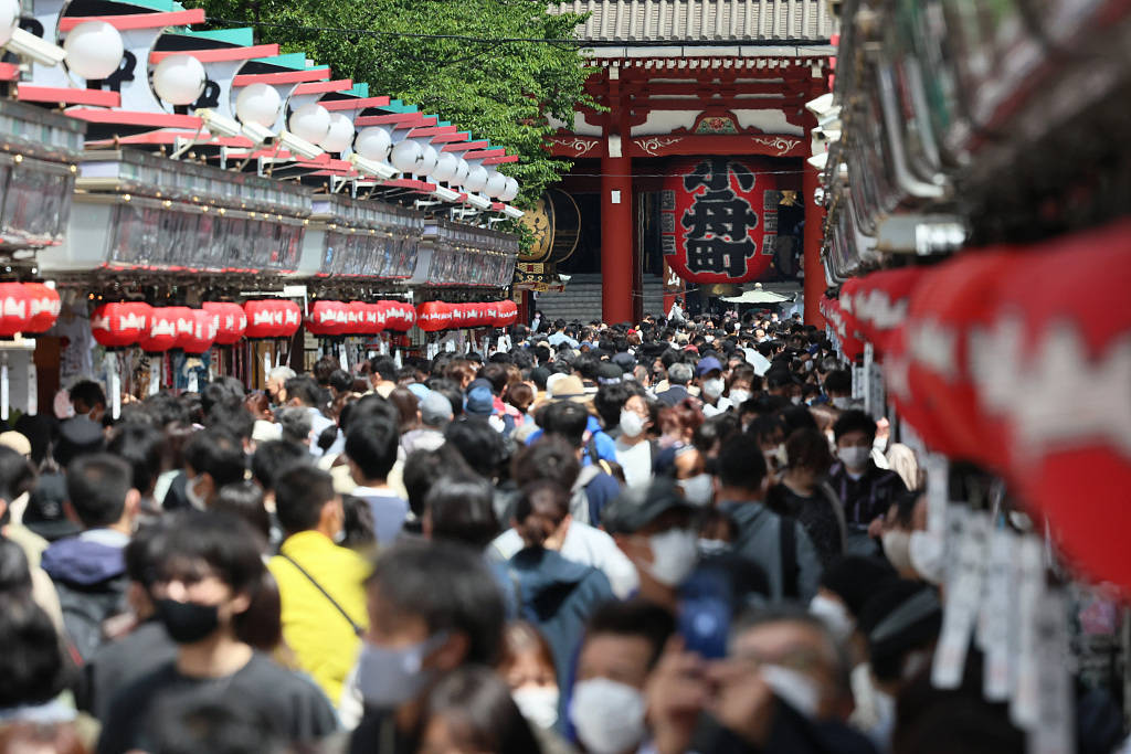 当地时间2022年4月30日,日本东京,黄金周假期开始,浅草寺入口门庭若市。