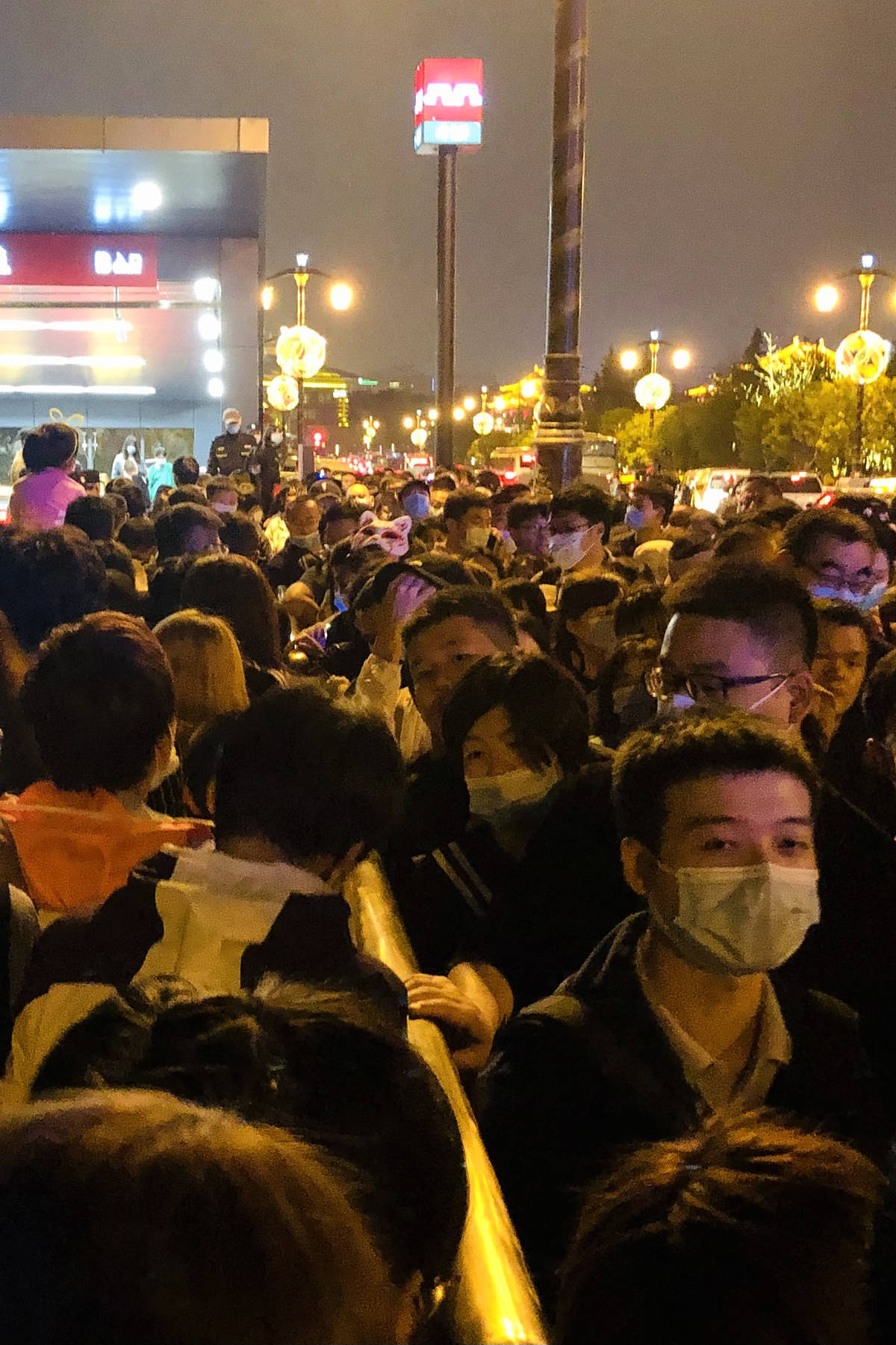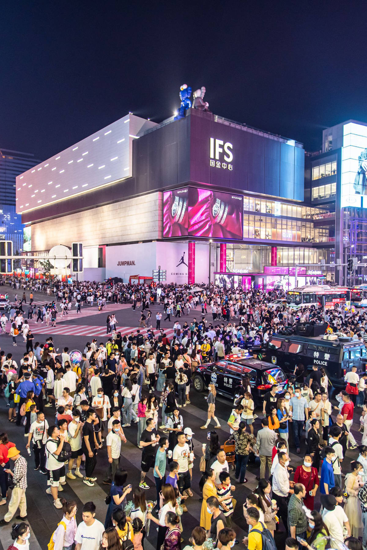 2021年5月3日晚9时许,西安,大唐芙蓉园地铁站已开始限流,游客需要排队30分钟才能进入地铁站内。
