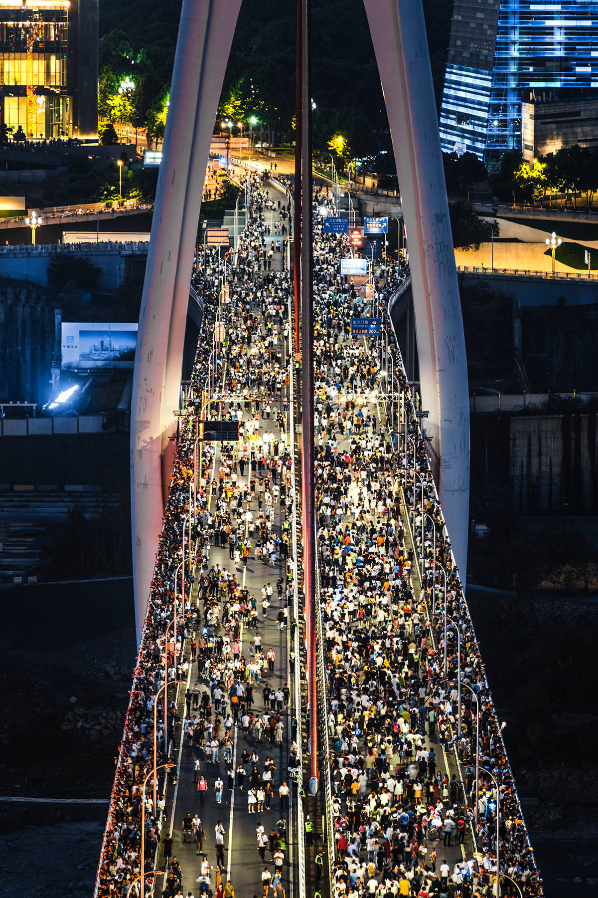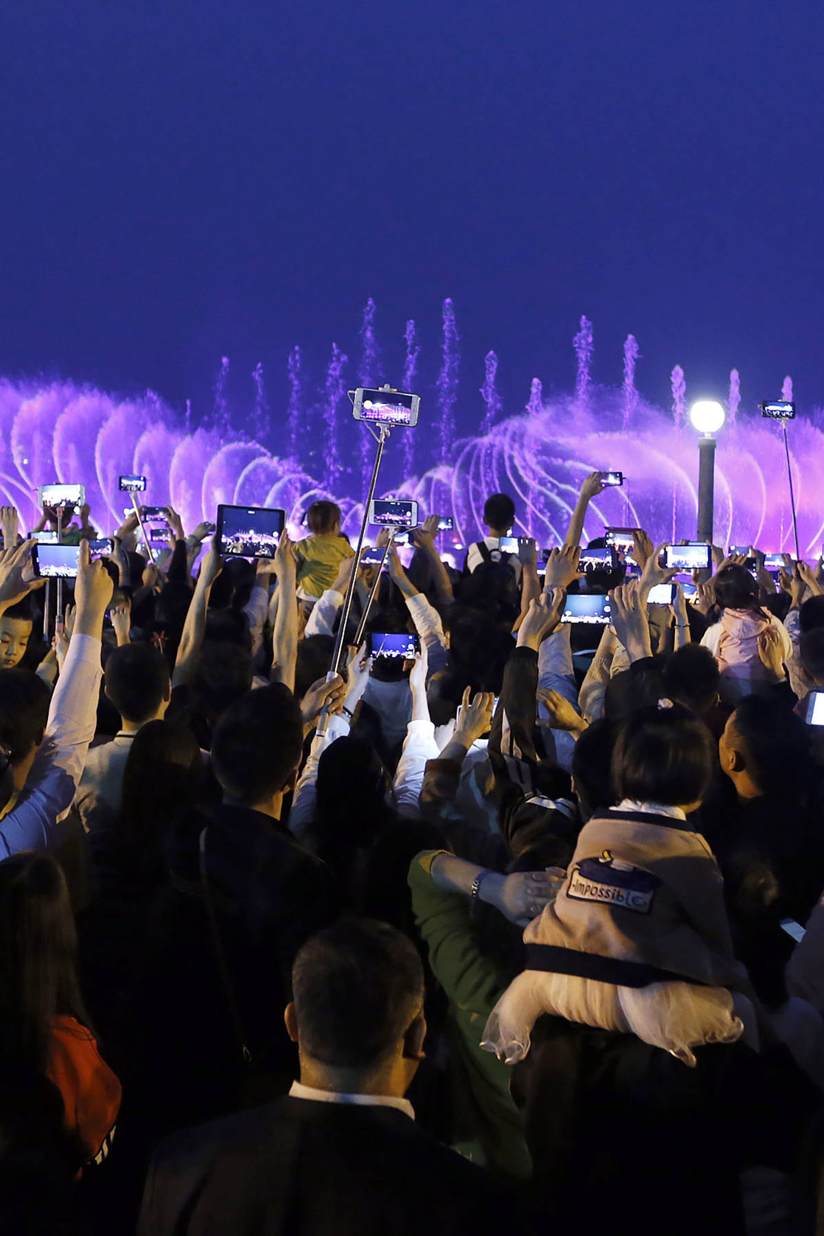 2019年5月1日,杭州,晚上7点,“网红”西湖音乐喷泉人山人海,游客们不约而同举起手机拍视频或照片。