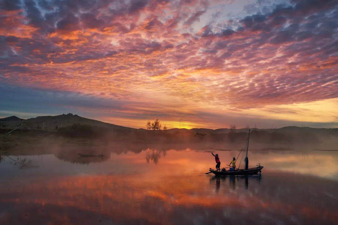 黄河奔腾运河流淌,彩霞明灭光影绰绰