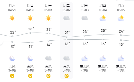 据气象部门预测,“五一”期间,我市天气晴到多云。有出行计划,需持续关注天气情况,以便做好准备。