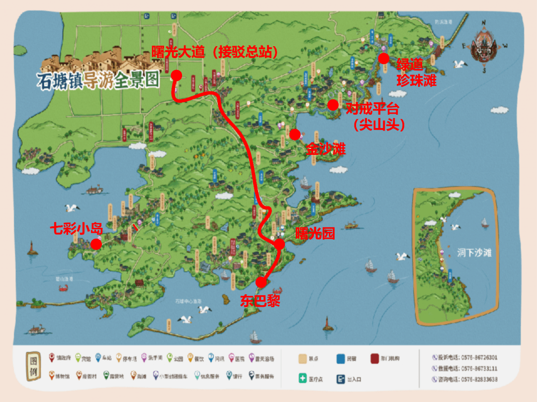 ①接驳总站→金沙滩→对戒平台(尖山头)