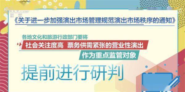 通知指出,各地文化和旅游行政部门要依法做好演出活动的审批工作,将属于营业性演出范围的农村集镇演出、流动性演出纳入审批管理,严格审核演出举办单位的资质文件,统一审批要求,做好内容监管。对不符合法定审批要求的,坚决不予批准。文化和旅游行政部门要定期对演出场所进行检查,督促演出场所定期开展设施设备检查,落实安全生产责任制。督促演出场所建立完善现场巡查制度,指定专人负责演出活动的巡查,做好现场观众管理,坚决防止拥挤、踩踏等事故发生,确保演出现场安全。各地文化和旅游行政部门要将社会关注度高、票务供需紧张的营业性演出作为重点监管对象,提前进行研判。督促演出举办单位、演出票务经营单位面向市场公开销售的营业性演出门票数量,不得低于核准观众数量的70%。对在票务经营中发现有炒票问题或可能造成不良影响的,应当及时约谈演出举办单位和演出票务经营单位,督促整改。要联合属地公安、市场监管等部门,依法打击“黄牛”炒票、虚假宣传等违法违规行为,切实保障消费者合法权益。
