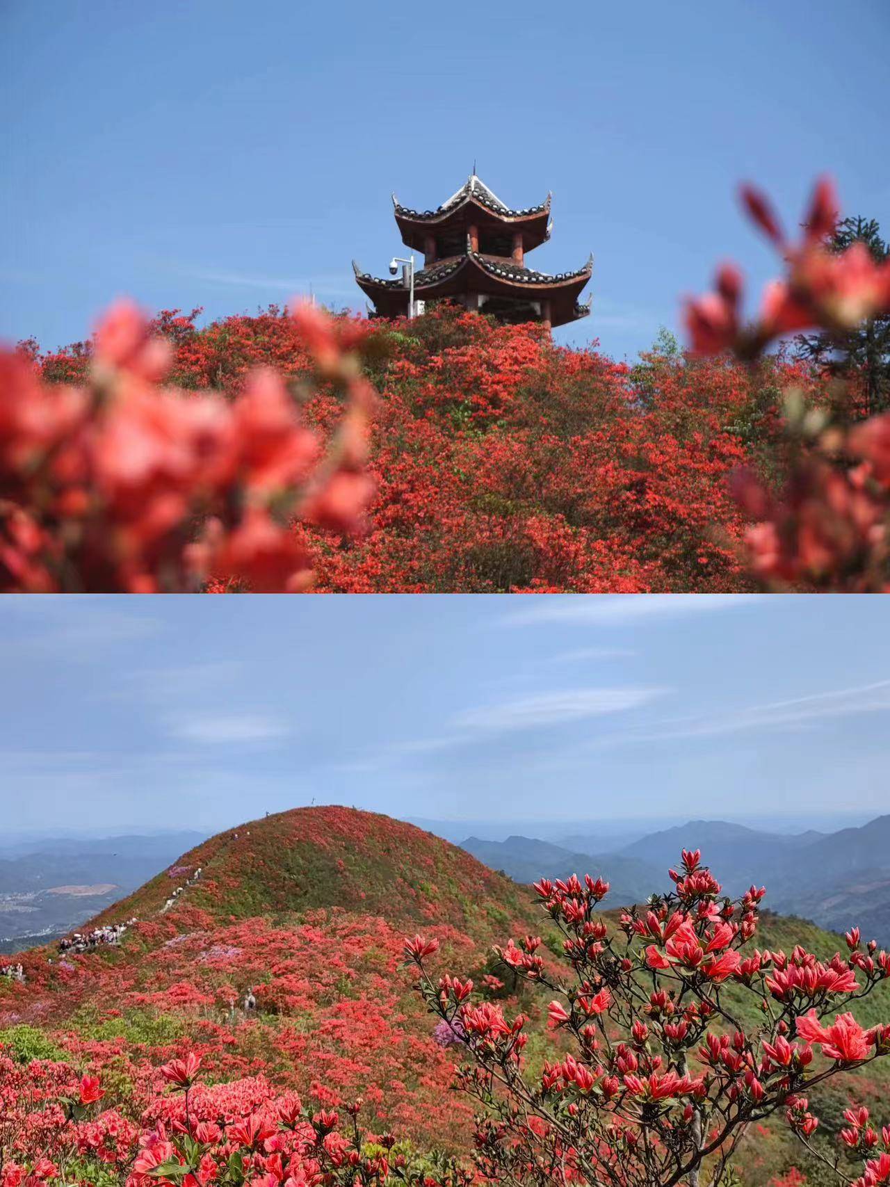 海拔1400多米的龙泉山上,这里有全国“唯一的高山花海”,曾获央视《新闻联播》点赞并在抖音播放超1.4亿次,是杜鹃花海中的“网红”。