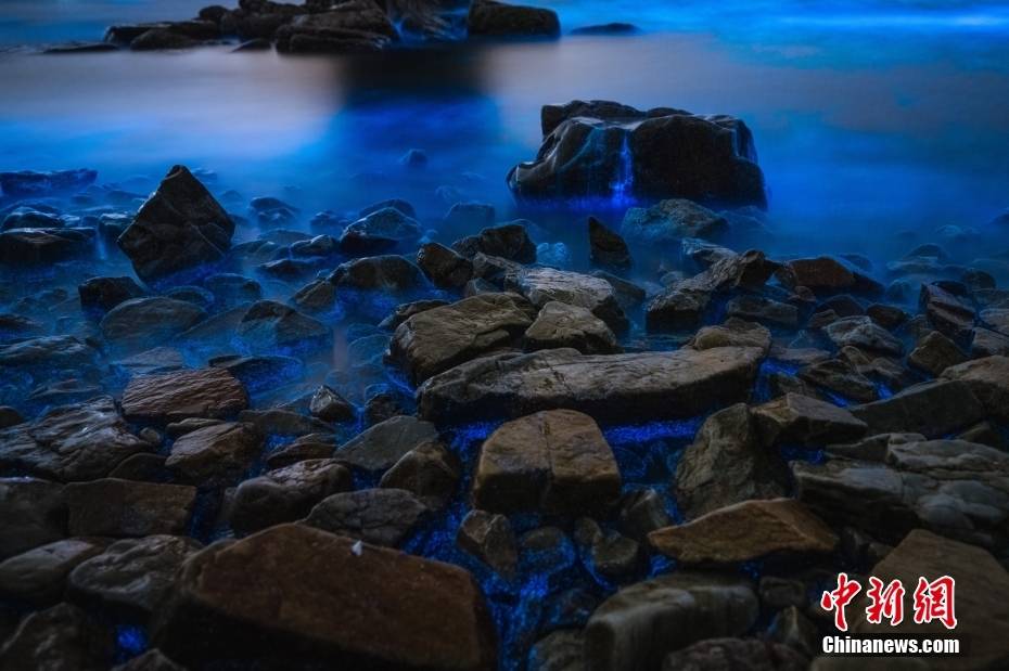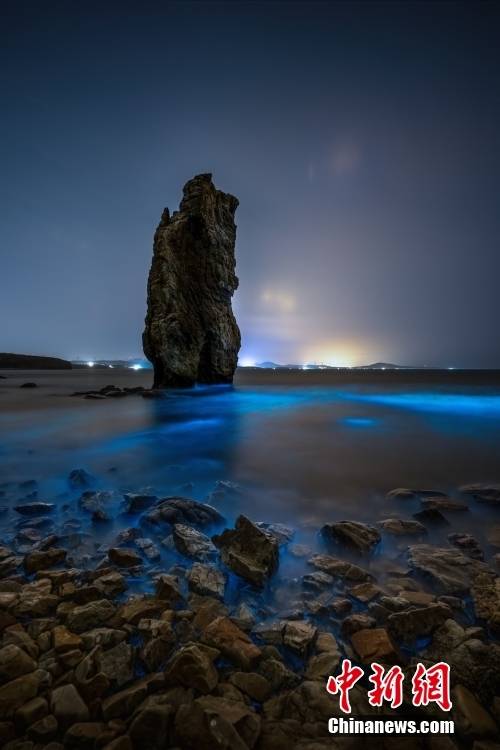 近日,辽宁大连,大连瓦房店排石景观迎来大面积荧光海景观,如梦似幻景色迷人。