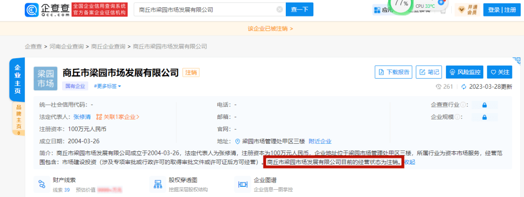 据查询企查查,商丘市梁园市场发展有限公司成立于2004-03-26,法定代表人为张修清,注册资本为100万元人民币,企业地址位于梁园市场管理处甲区三楼,所属行业为资本市场服务,经营范围包含:市场建设投资(涉及专项审批或行政许可的取得审批文件或许可证后方可经营)。商丘市梁园市场发展有限公司目前的经营状态为注销。