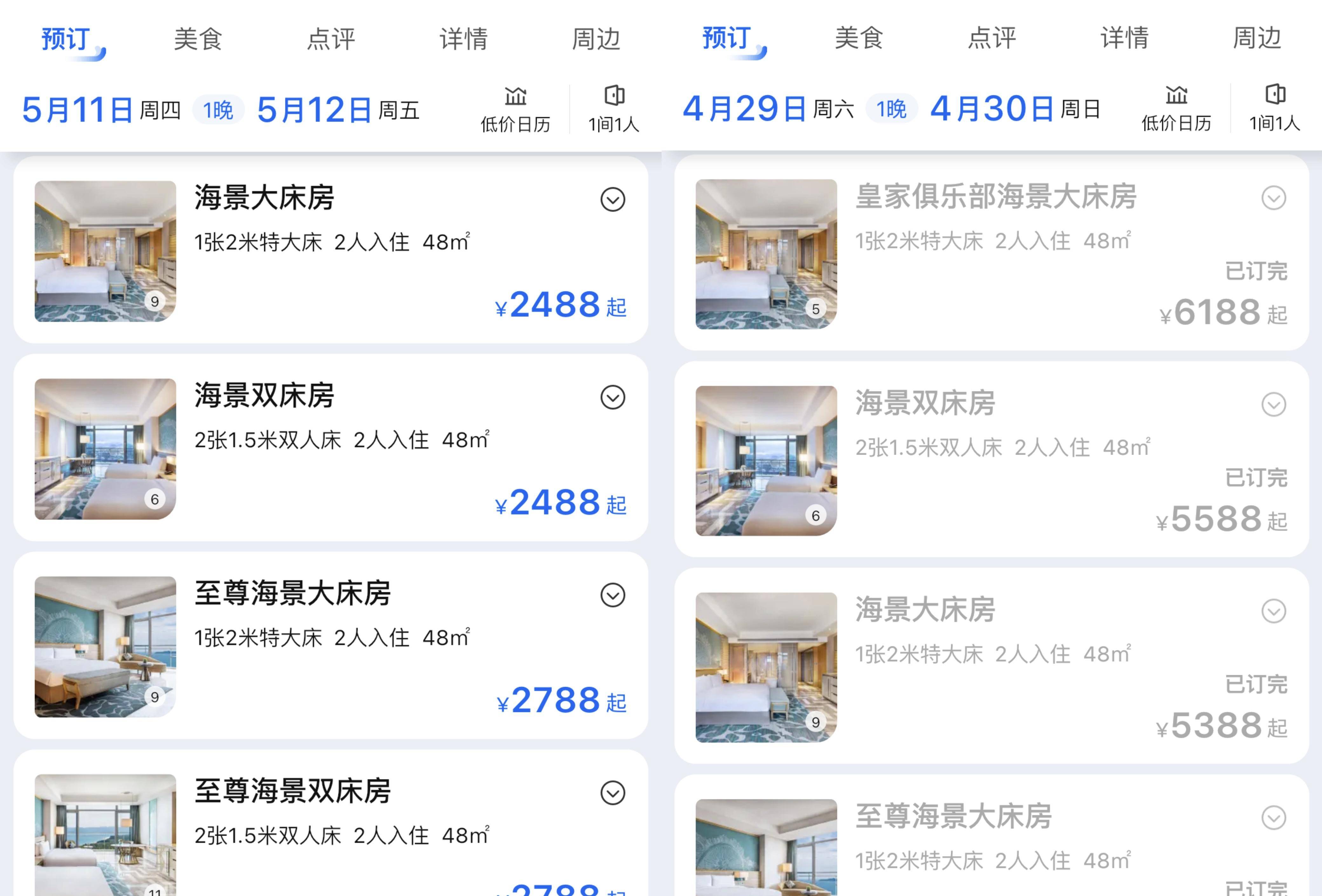“五一”出游热潮临近,记者通过在线旅游平台查询发现,一些热门旅游城市的酒店均出现不同程度的价格上涨,景区、景点和公交枢纽附近更是涨价“重灾区”。以三亚为例,高星级酒店因房价基数高,涨价后显得尤为“高不可攀”。