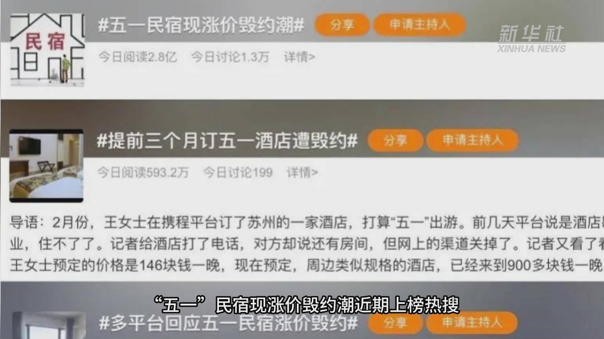 对于已提早预订下单的消费者来说,同样有闹心事。“五一民宿现涨价毁约潮”近期上榜热搜。部分民宿毁约理由千奇百怪,如装修、倒闭、换老板、管道漏水等,并要求消费者自行取消订单或补差价才能入住。法律专家表示,这种行为涉嫌违反价格法和消费者权益保护法等法律法规,消费者可主张索赔。但这类问题的索赔金额不大,一般人怕麻烦,不会就此真地提出诉讼,因此维护消费者合法权益还需要凝聚平台方、行业协会和监管部门的多方合力。
