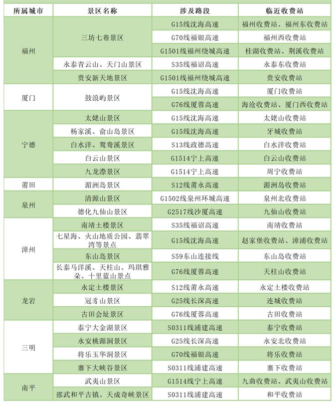 省内热门景区及收费站汇总