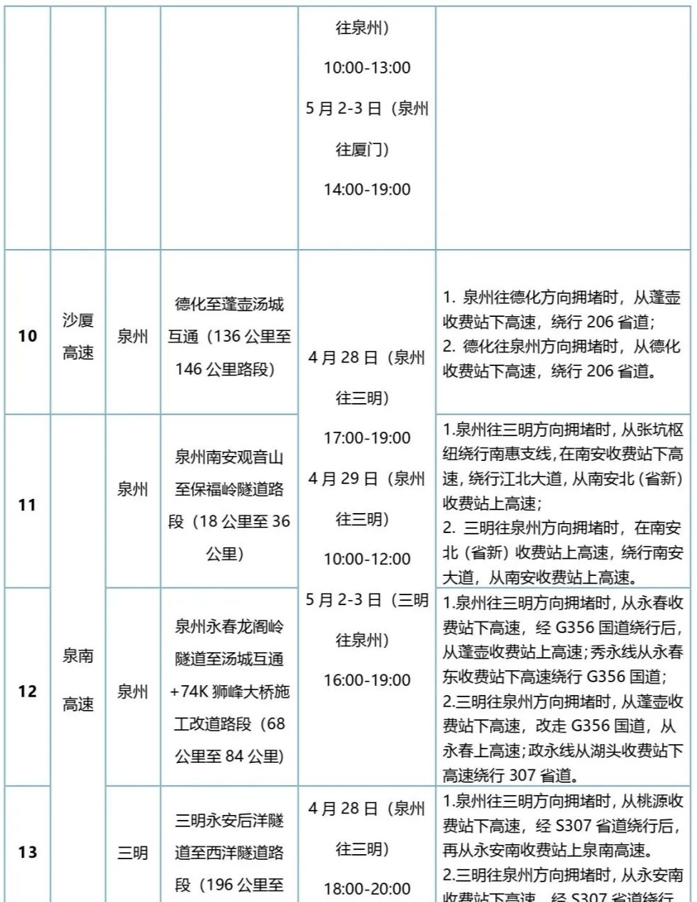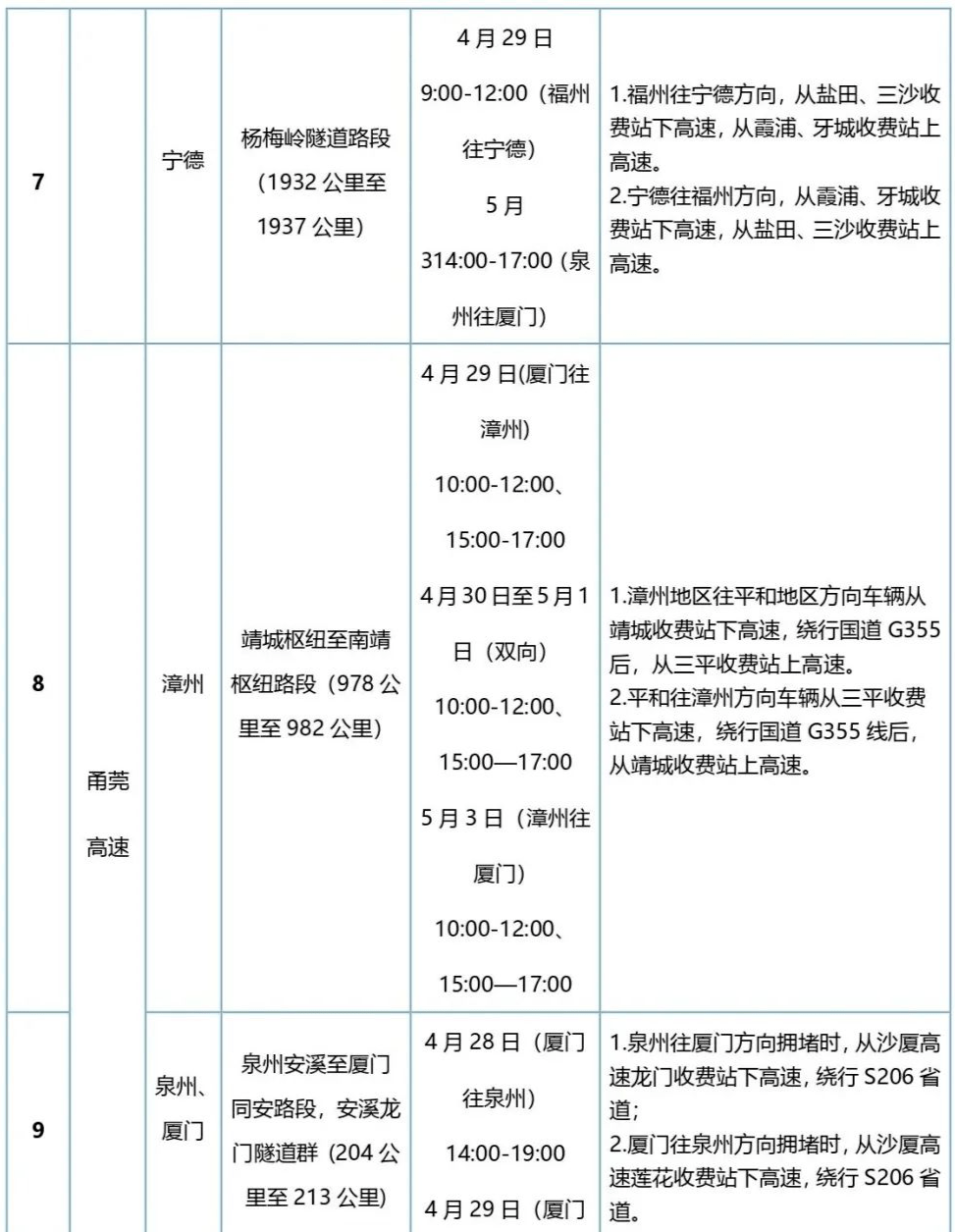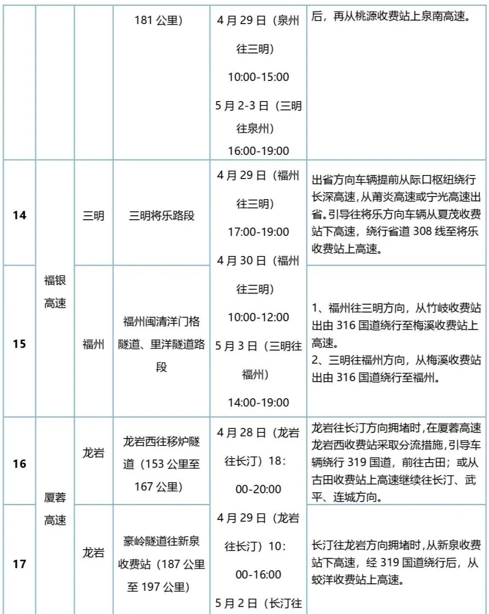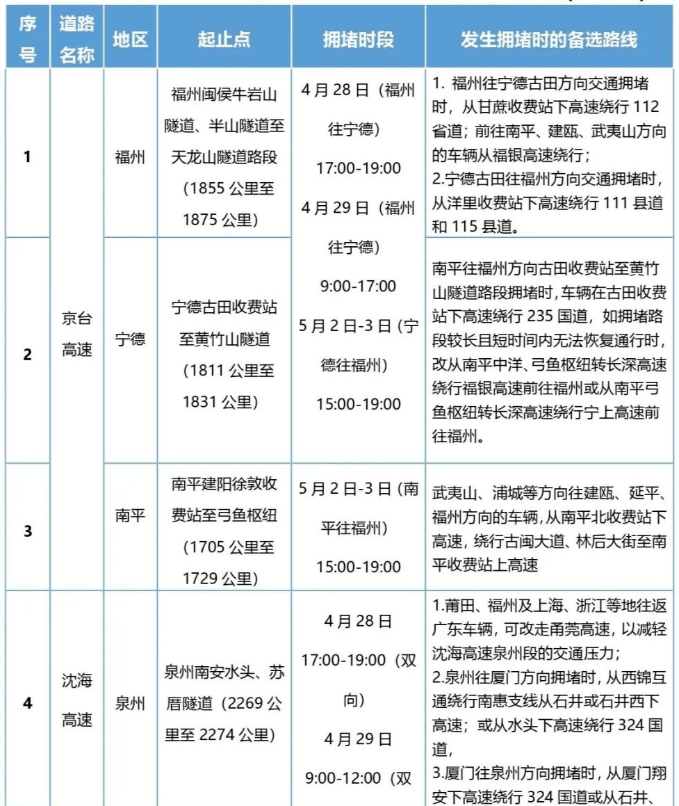 4月30日至5月1日,热门景区周边及福厦漳泉区间的高速公路流量持续高位运行。