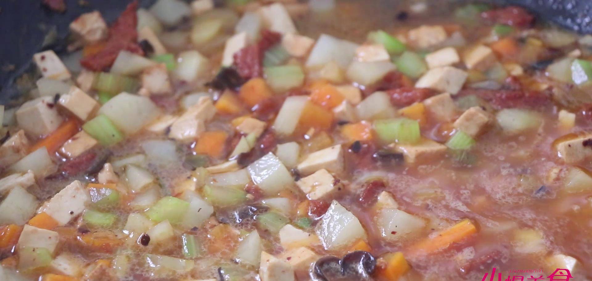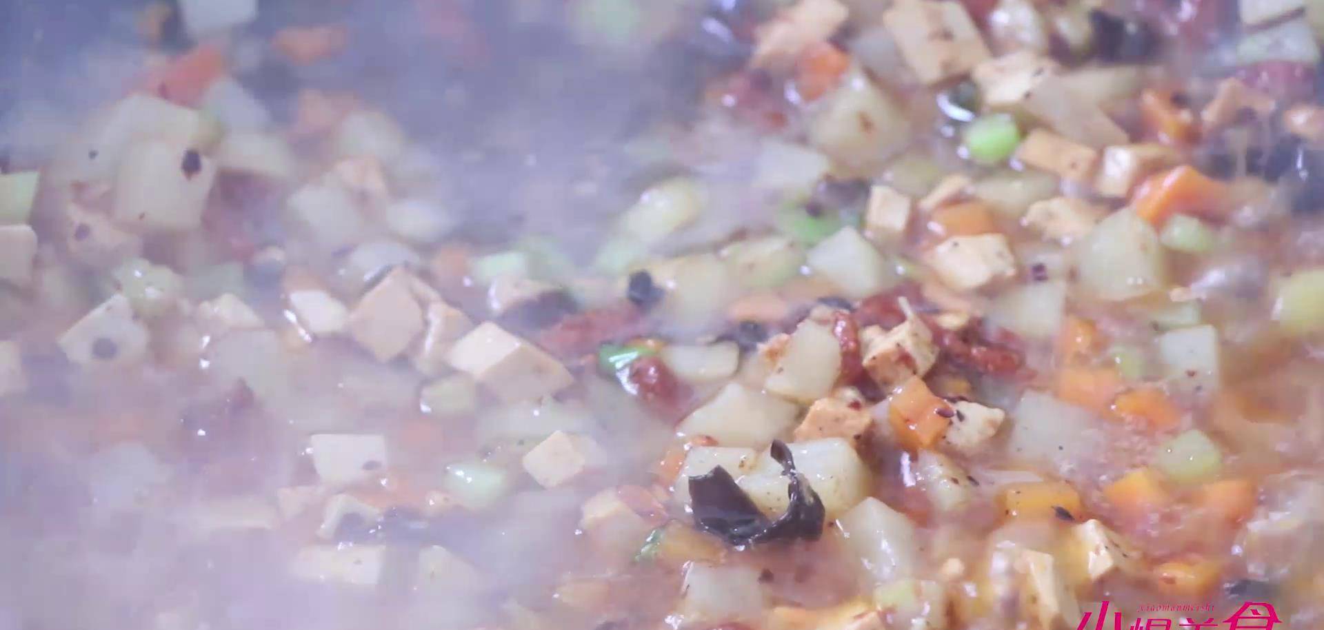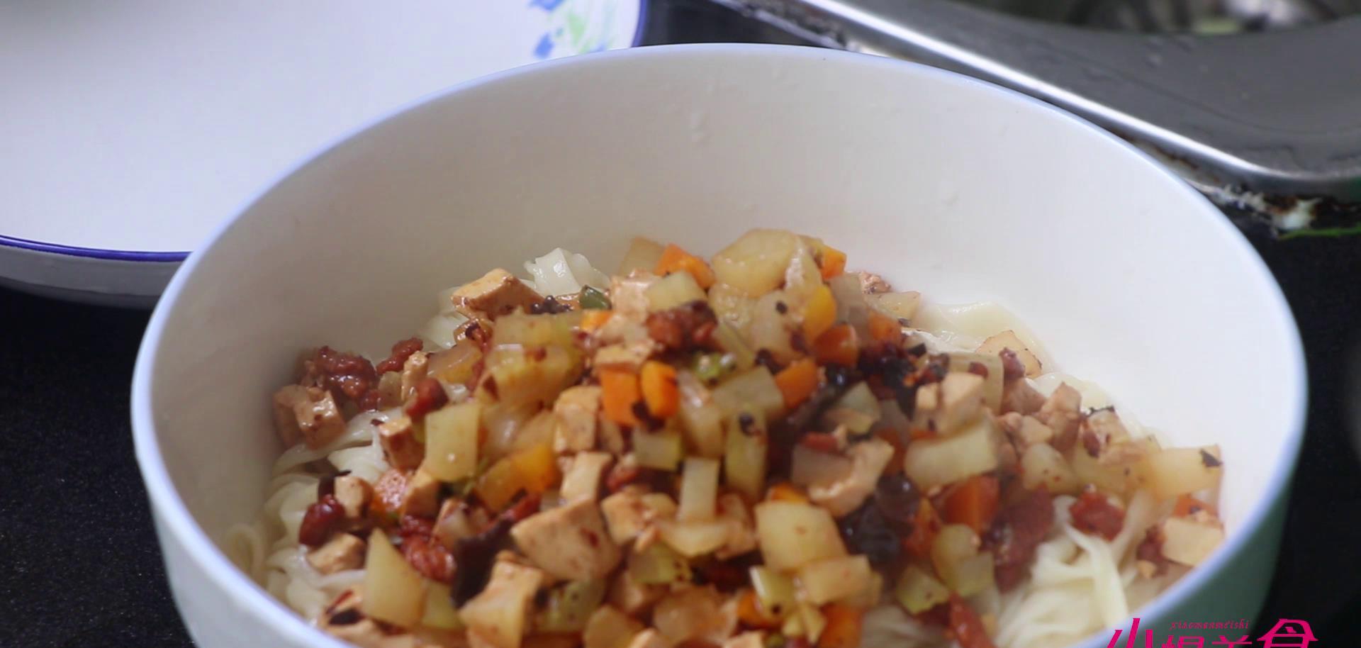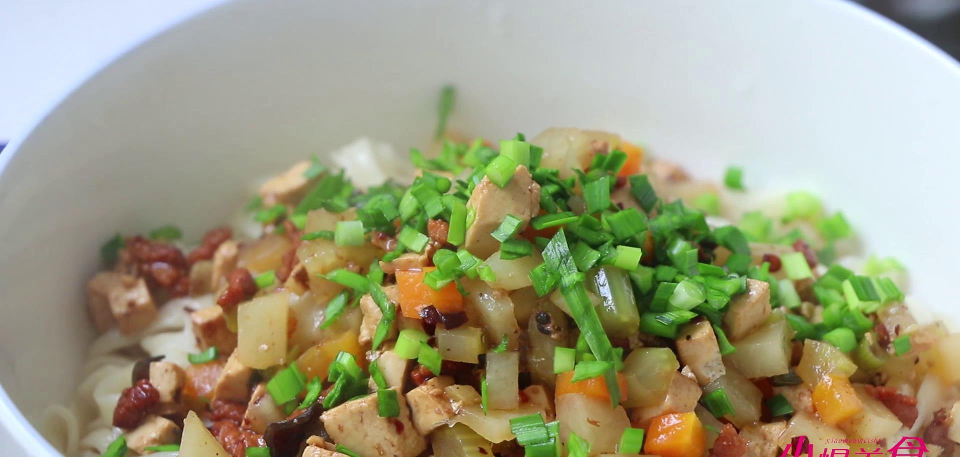 臊子面准备的食材呢比较丰富,有胡萝卜,韭菜,西芹,土豆,豆腐,猪肉。