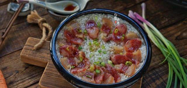 这个最最香了!用电饭煲正常蒸米饭,把一根香肠放在锅里一起蒸。等到米饭好了,打开电饭煲,香味扑鼻,这米饭吸取了香肠的香味和油分,香到没有朋友!把香肠切成片,一口米饭一口香肠,世间之幸福莫过如此!