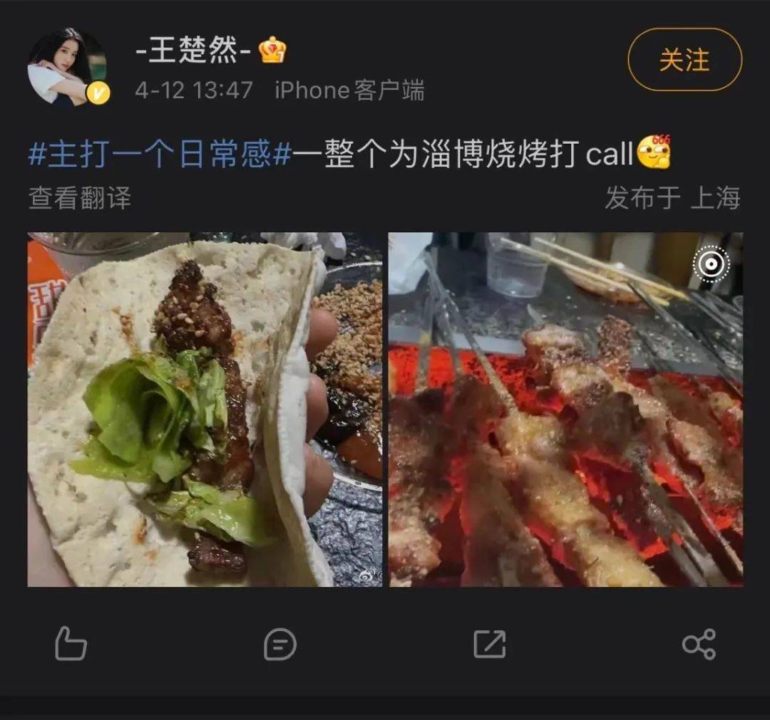 随着热度逐渐飙升,一大批网红、网友纷纷实地打卡,除了上文中提到的特别乌啦啦、B太等博主外,诸如高亚麟、王楚然等一众明星也纷纷“下场”助力宣传,最终让“淄博烧烤”从地域级名次变成了现象级“社交动词”。