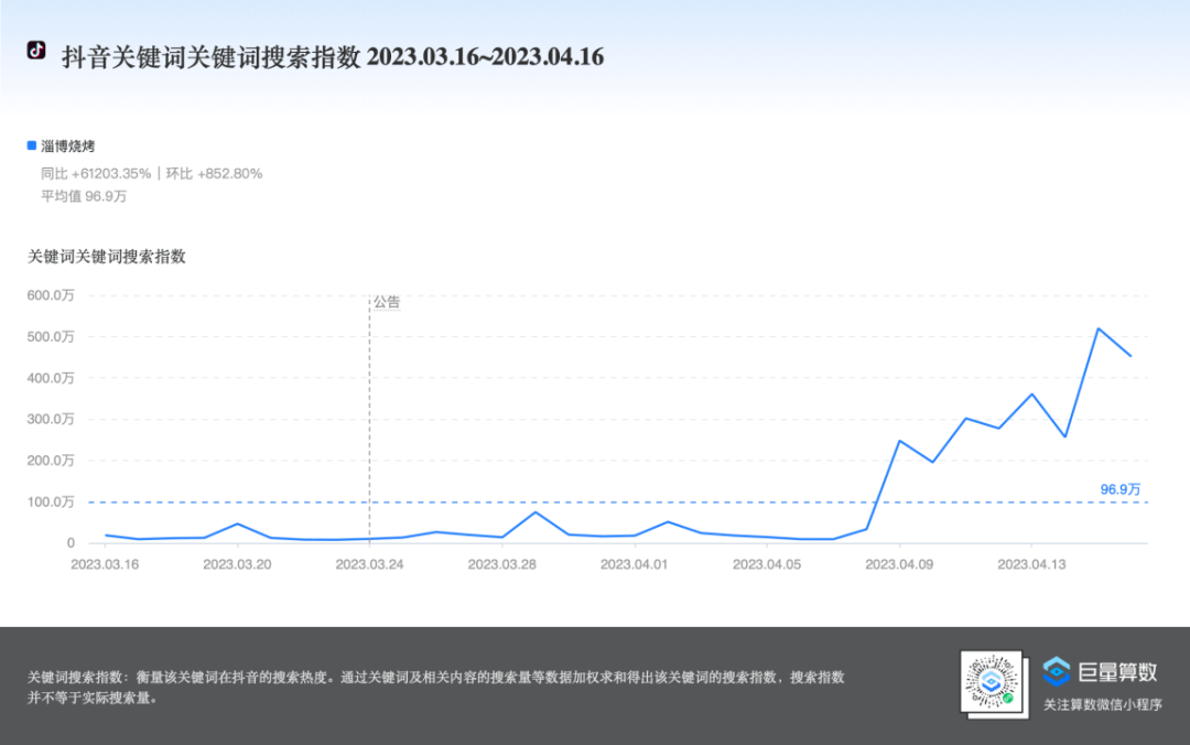 当然,从图中我们也不难看出,4月初,“淄博烧烤”又迎来了一波“高峰”。