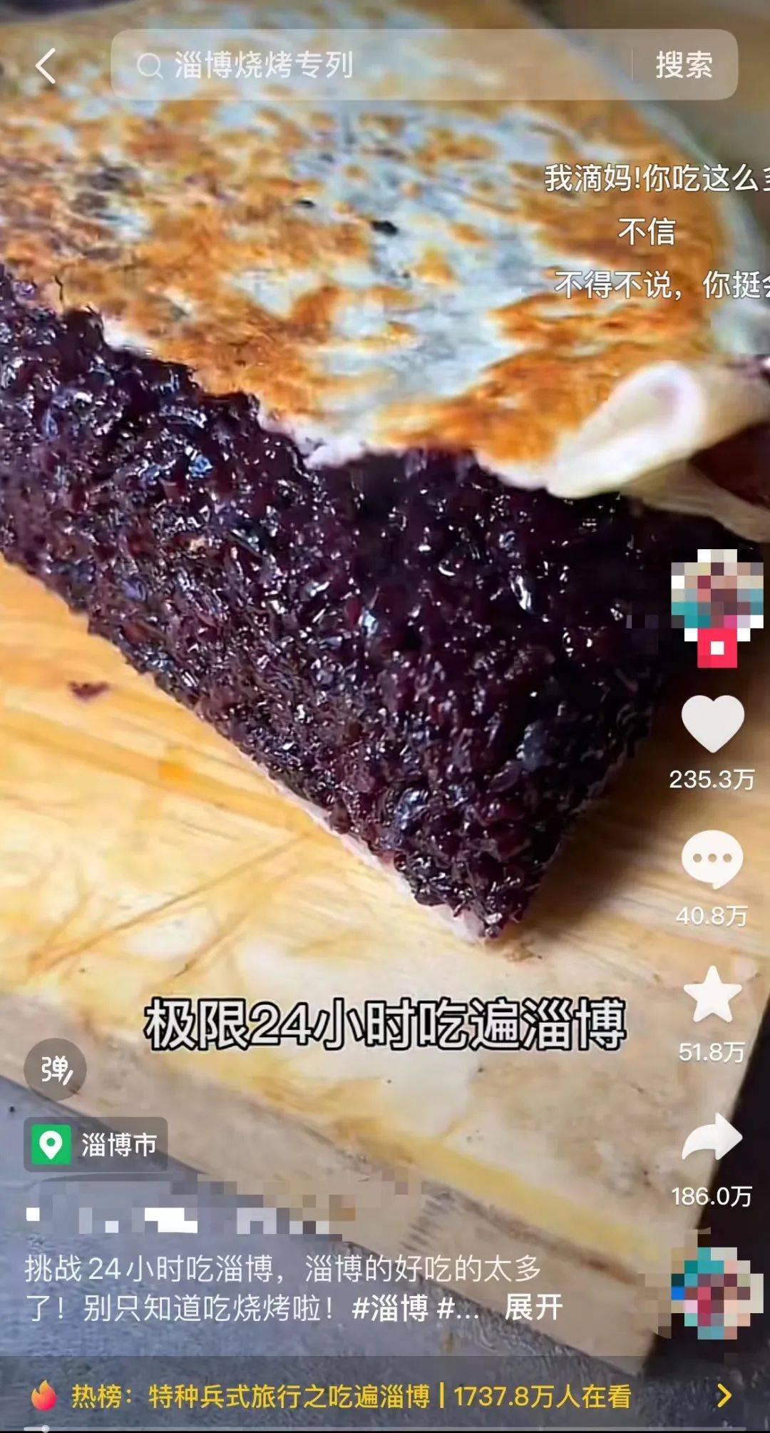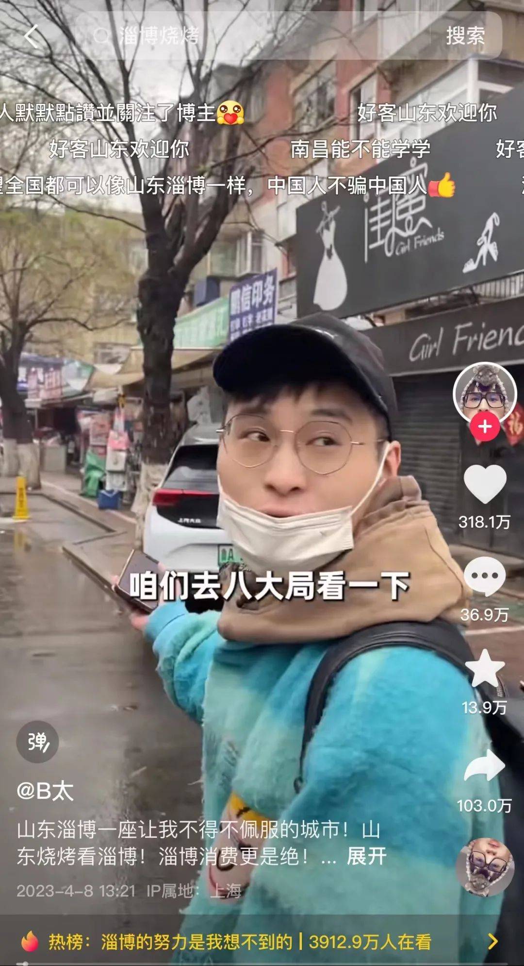 “真诚才是永远的必杀技”。视频中摊位老板的真诚与热情,以及博主“B太”独特的定位推动,再一次加速了淄博的出圈,不少网纷纷留言表示“想去淄博吃烧烤”、“山东人民太感人了”。