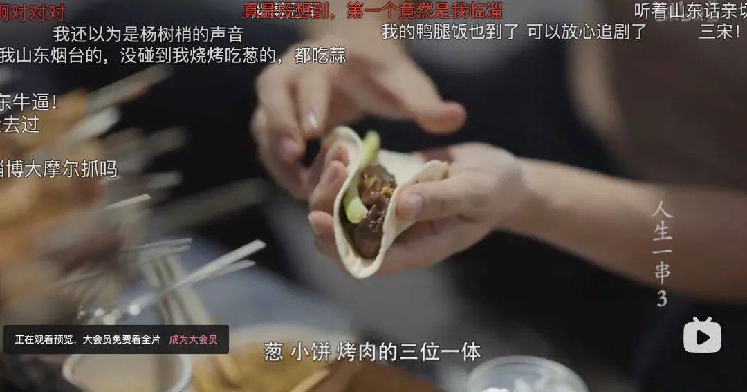 在2021年B站美食纪录片《人生一串》走红网络之际,淄博烧烤就出现在了第三季第一期中。凭借《人生一串》戏剧性、文学性的特殊描绘、纪录片中对淄博烧烤“滋滋冒油”的特写镜头,再加上对山东人民朴实、勤劳的深刻记录,当期视频播放量高达530万+点赞量。