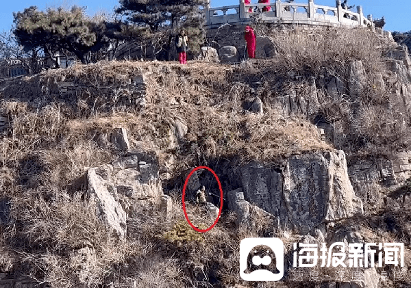 游客随手一扔 环卫工要爬下几十米悬崖清理