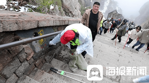 “有个别游客嫌麻烦随手扔个塑料袋,或者脱下雨衣找个石缝随手一塞,风一刮就会飘到悬崖峭壁上。”张可华告诉记者,长杆子只能够到一部分垃圾,如果不爬下悬崖清理,垃圾只会越积越多,泰山上的安全卫生情况将难以想象。