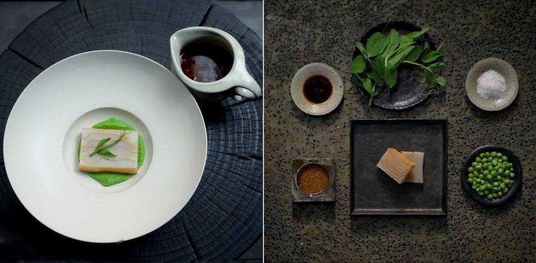 A:大理南涧的市井小吃也能走上北京精致餐饮的餐桌,重新演绎“豌豆的一生”。大理南涧的老品种豌豆,经晒干、磨粉、成浆。先摊制成锅巴,再熬煮成油粉,一层锅巴一层油粉,划开后如山峦般层层叠叠。油粉软糯细腻,锅巴绵韧耐嚼,自制的酸木瓜醋和辣椒油,起到点睛之笔的作用,这一抹酸辣之野,就像为山峰涂上了一层神秘的薄红。