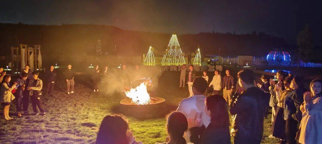 和朋友们在篝火旁载歌载舞
