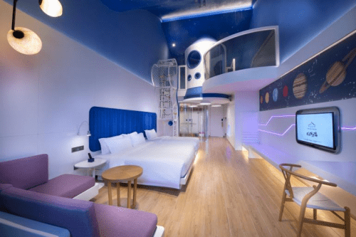 综合型旅游度假区,则可以很好满足家庭亲子游客的需求。比如森林海旅游度假区,在五一期间就成为不少家庭玩乐度假的首选。针对亲子游客,专门推出亲子主题房,根据森林、海洋、星空三个主题进行打造,充满童趣。