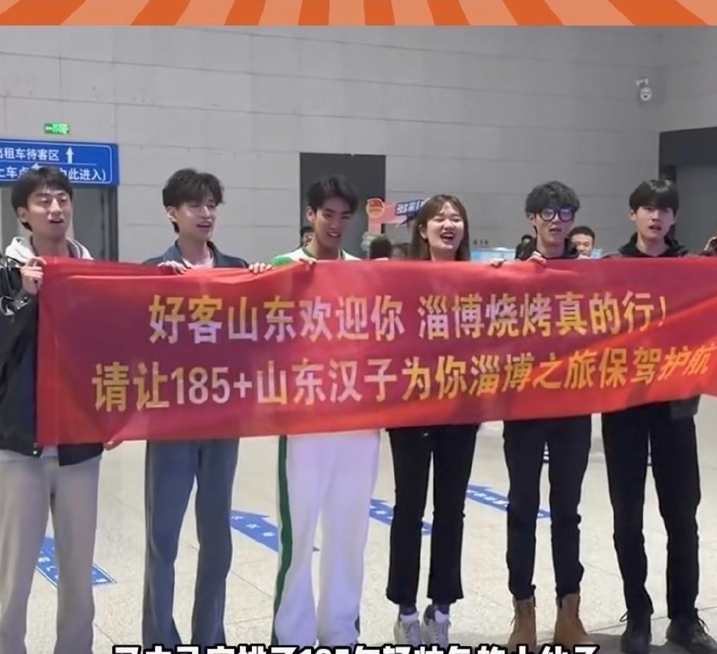 185的汉子占领了接待外地游客的第一线,游客来到淄博的第一眼风景,这还不沦陷?