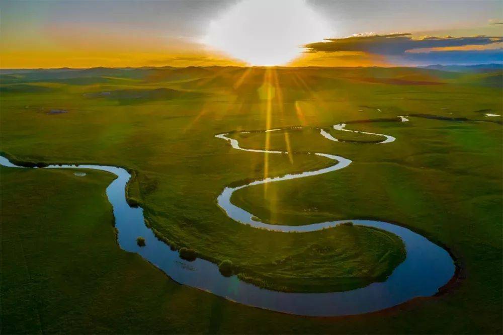 乌拉盖草原因河而名,九曲湾是乌拉盖河最蜿蜒曲折的河段,环绕在高尧乌拉山脚下,似一条银色的哈达镶嵌在绿色的大地上,沿河岸一侧生长的红柳,将这条河装扮得更加婀娜多姿。来到曾入选为中国美丽田园的九曲湾景区,不仅叹服于大自然的鬼斧神工,沉醉于浑然天成的美妙画卷,还能享受这里国家4A景区的智慧化服务,尽享天人合一的美梦。