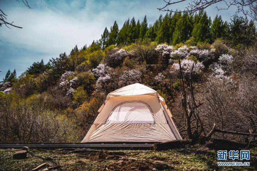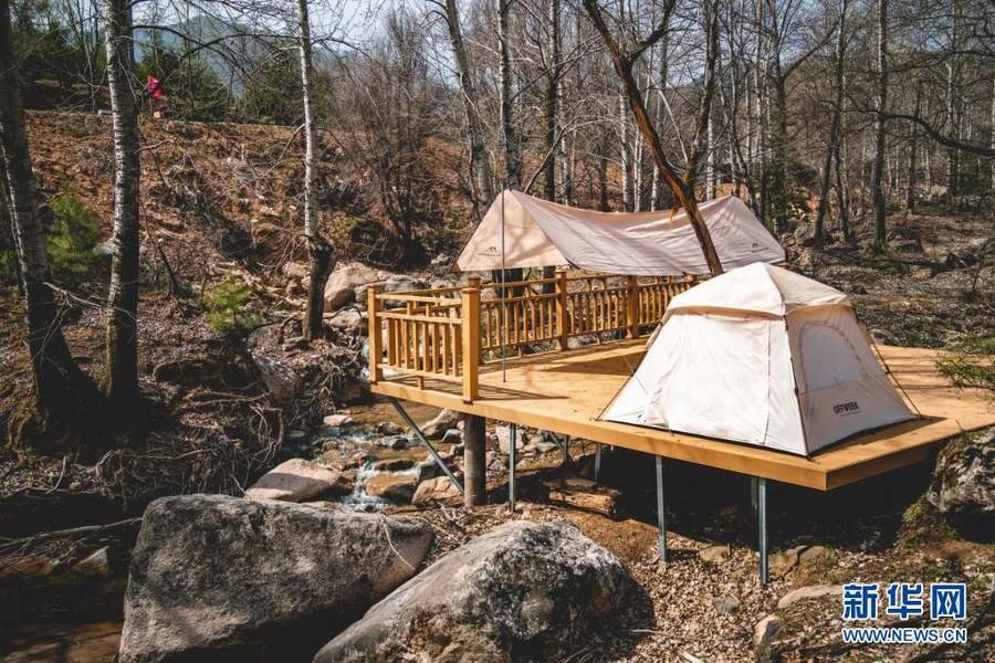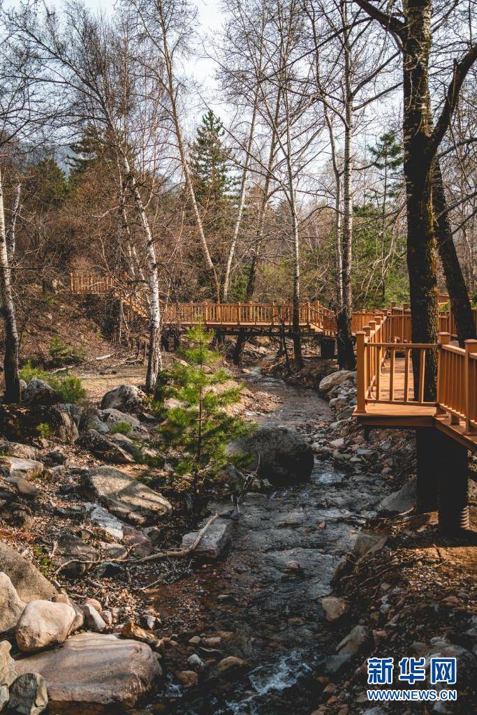 略施粉黛的大东沟景区,借露营让满林春色“出墙来”。图为大东沟景区一角。新华网 发(马梦迪 摄)