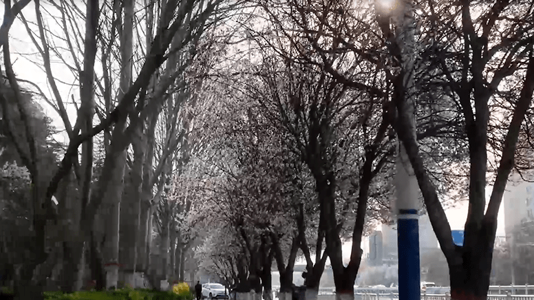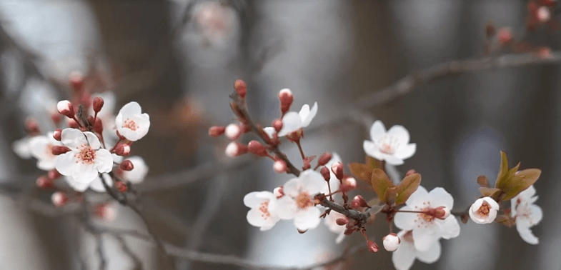 记者在康成大街放眼望去,一串串的花枝摇曳着,仿佛在向人们招手致意。紫叶李花迎春绽放,如玉雕般的紫叶李花缀满枝头,散发着清幽的芬芳,一派春意盎然的醉人景象。远远看去,一树一树的浅粉花连成一片,如云似霞,妩媚动人,把整个城市点缀得如梦如幻。微风拂来,美丽的花瓣飘洒着,蔚蓝的天空、粉白的花朵交相辉映,美轮美奂。不经意间,凤城大地已是春意盎然,引得市民纷纷驻足观赏。