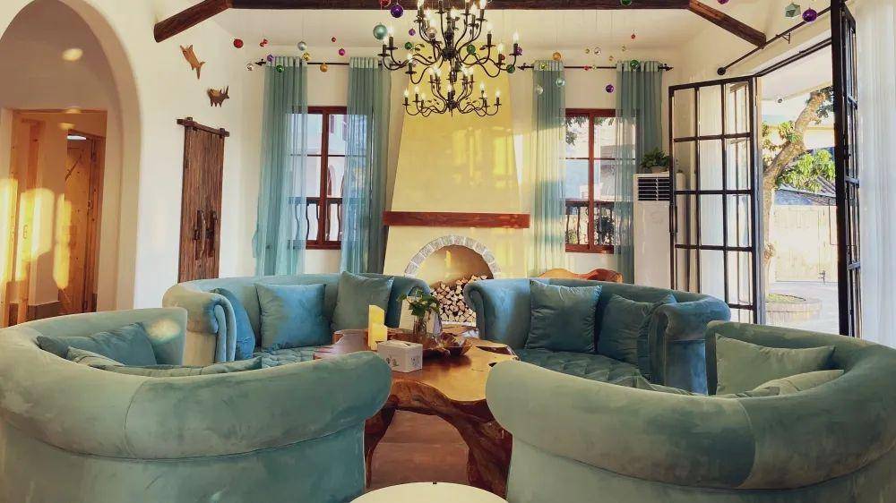 如果要用一个词来形容这间客厅,那么包罗万象显然最适合不过,几十平米的客厅内,汇集了世界各地的特色元素:既有地中海风情的圆形拱门,也有北欧样式的复古壁炉,印度尼西亚原始森林中的参天巨木漂洋过海来到这里成为了晚宴长桌,甚至不起眼处的羊头摆件都来自遥远的澳洲草原。
