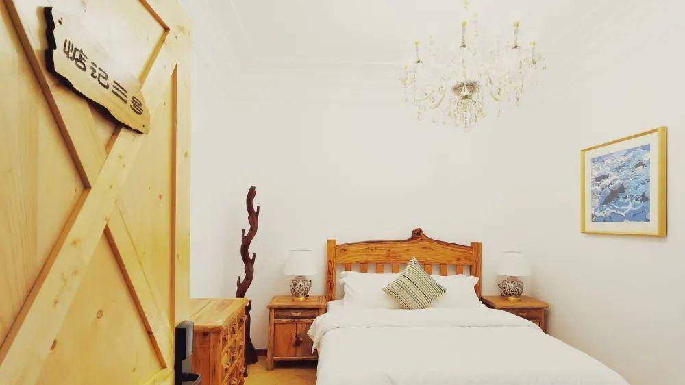 民宿共有9间客房,清一色的原木极简风手作打造,所有的家具都被设计师尽可能地保留了材料的原生形态。