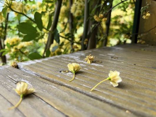 四月的顾村公园,告别了樱花的繁盛,又迎来木香花的绽放。金黄的花朵随风摇曳,送来阵阵沁人的香气。