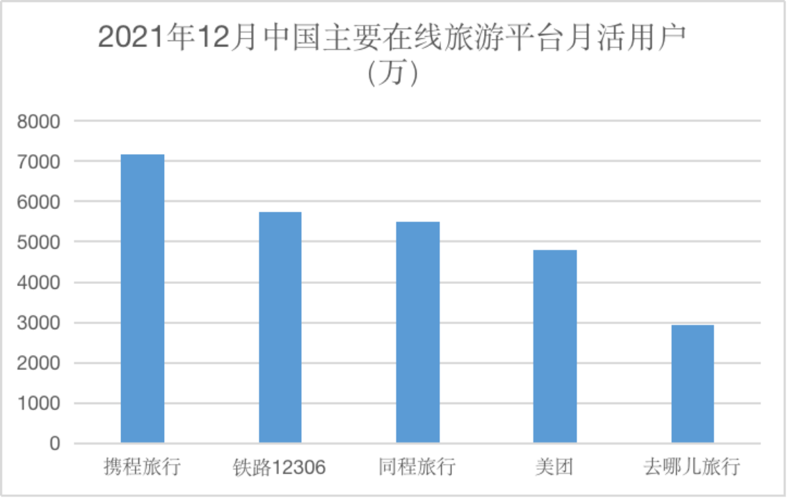 按月活用户数据看,Fastdata数据显示,携程同样位居第一,月活用户达到7170万,铁路12306、同程、美团、去哪儿次之。