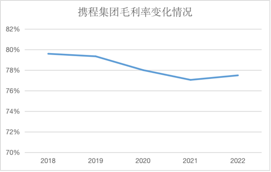 毛利率方面,依托轻资产模式与规模优势,携程毛利率水平基本维持在70%~80%之间,高于国内OTA同行;不过,2018年以后企业毛利率整体有所下滑。