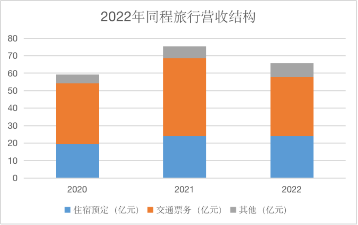 分业务来看,财报显示,2022年携程交通票务收入33.8亿元,占总收入 51.3%,是企业的主要收入来源;住宿业务24.1亿元,占总收入36.7%;其他业务7.91亿元,占总收入12.0%。除了住宿预订,同程还提供餐饮、保险等增值服务提高变现率。