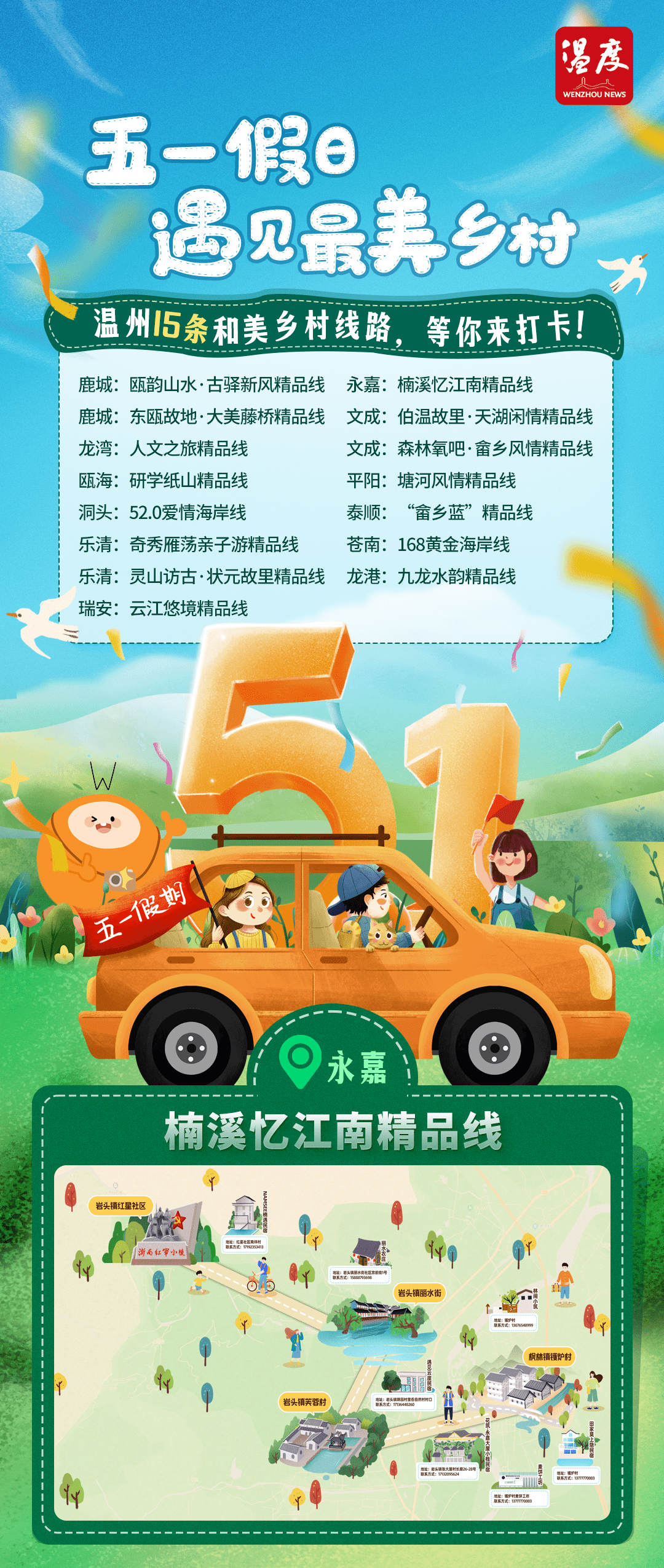 这个五一小长假,你准备好出游了吗?不妨去周边的乡村走一走。小编特地为您整理了温州15条“和美乡村”精品线,总有一条线路适合你。