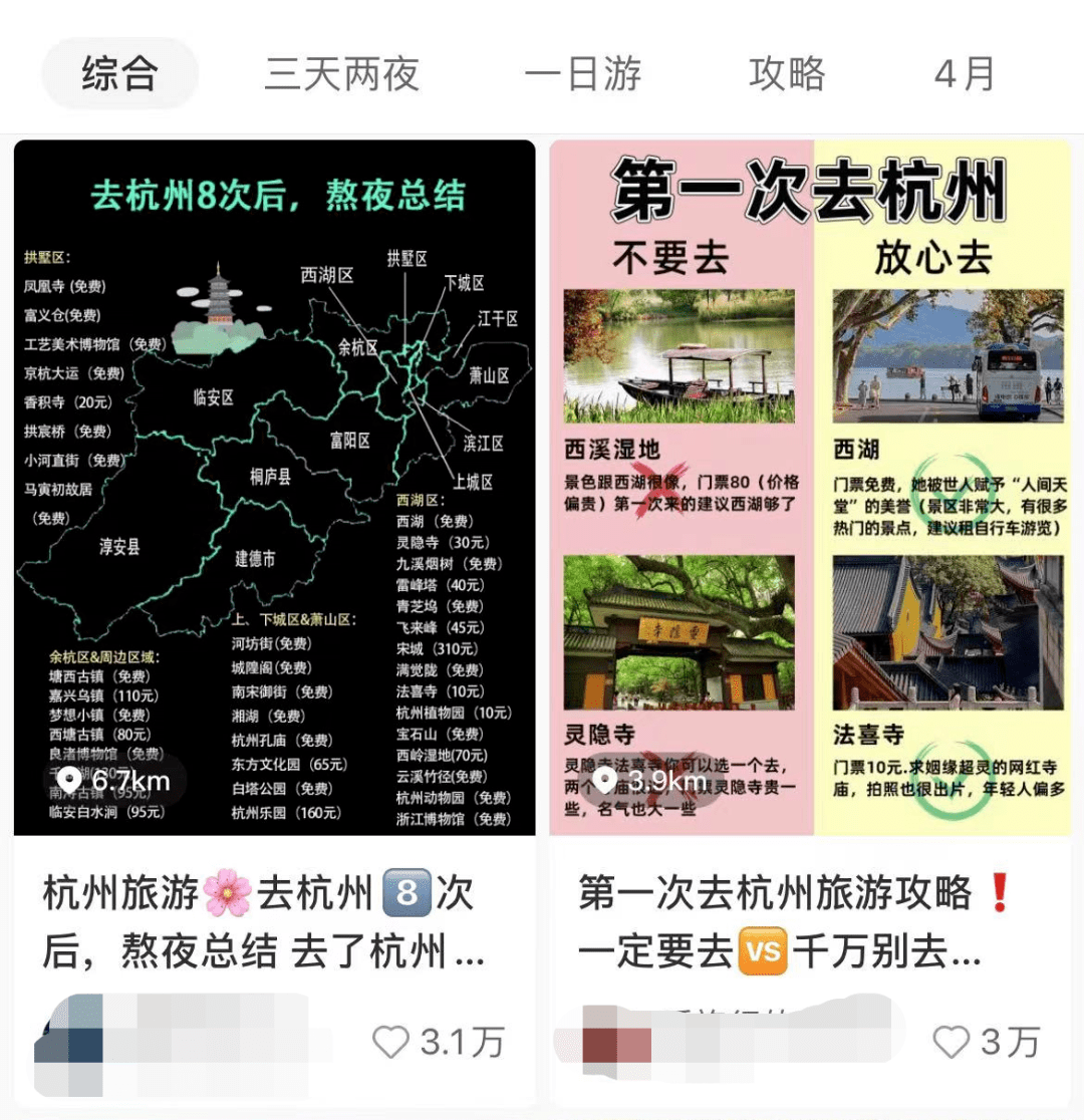 旅游信息差干扰出行,游客扎堆西湖。如今在互联网高度发达的时代,想去哪里只要打开手机搜索,便能轻松得到出行攻略。在微博、小红书等热门App上搜索杭州旅游,大家最先看到的就是西湖、灵隐寺,而塘栖古镇、瓶窑老街这些景点的曝光度并不高,相对西湖而言也就没有这么多人。和陈阿姨一样,不少来杭州旅游的游客都将西湖景区,作为第一个景点,沿着西湖景区转一天差不多就结束第一天行程。