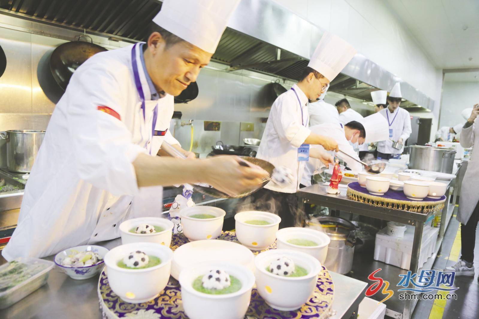 水母网4月27日讯(YMG全媒体记者 姜晓 通讯员 魏静 刘丽丽 摄影报道)4月26日上午9时30分,第二届中国(福山)鲁菜文化节暨“丽苑华宴杯”山东省首届经典鲁菜烹饪大赛在烟台丽苑大酒店如期举行。来自全国各地的200位鲁菜名厨和烹饪学校的学生们,纷纷拿出自己的看家本领,上演了一番“百家争鸣”的局面。切食材、调配料,精湛的刀工技术、娴熟的翻炒做法、精美的摆盘工艺,不一会儿,一道道经典的鲁菜一一呈现在评委和观众面前,大家都赞不绝口。