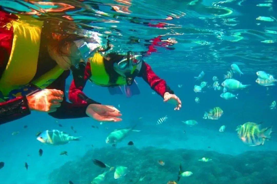 09:15 抵达桑洲岛 【体验浮潜】,浮潜下去抓海鲜并且欣赏海底世界的徇烂多姿(桑洲岛水质有当天天气以及风向决定清澈,尽量穿着长衣长裤下水)