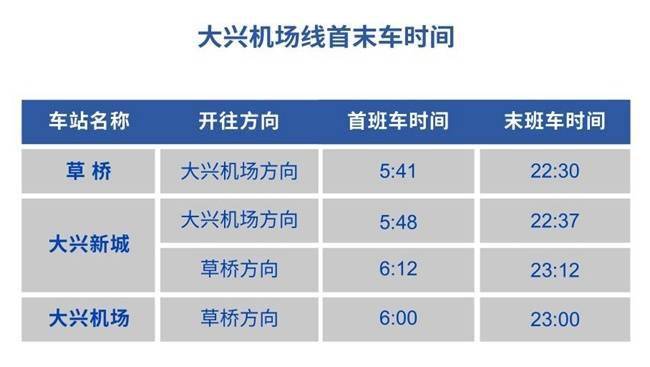 人民网北京4月27日电 (董兆瑞)记者从北京市交通委获悉,为了服务大兴机场早间出港旅客的接驳需求,自2023年4月28日(星期五)起,地铁大兴机场线草桥站至大兴机场站方向,始发站草桥站首班车时间由6:00提前至5:41。