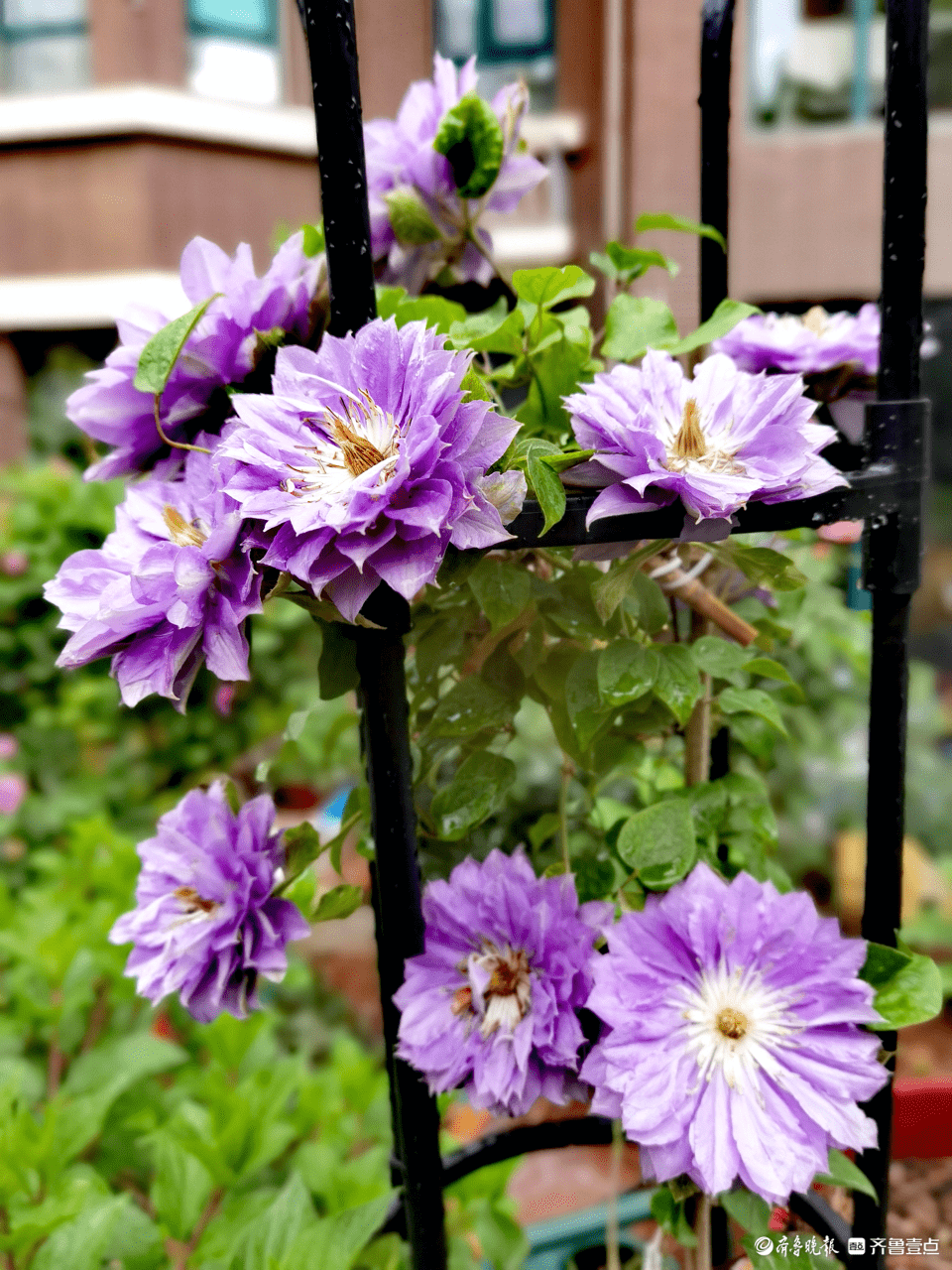 小区花园里的铁线莲开花了,优雅的淡紫色