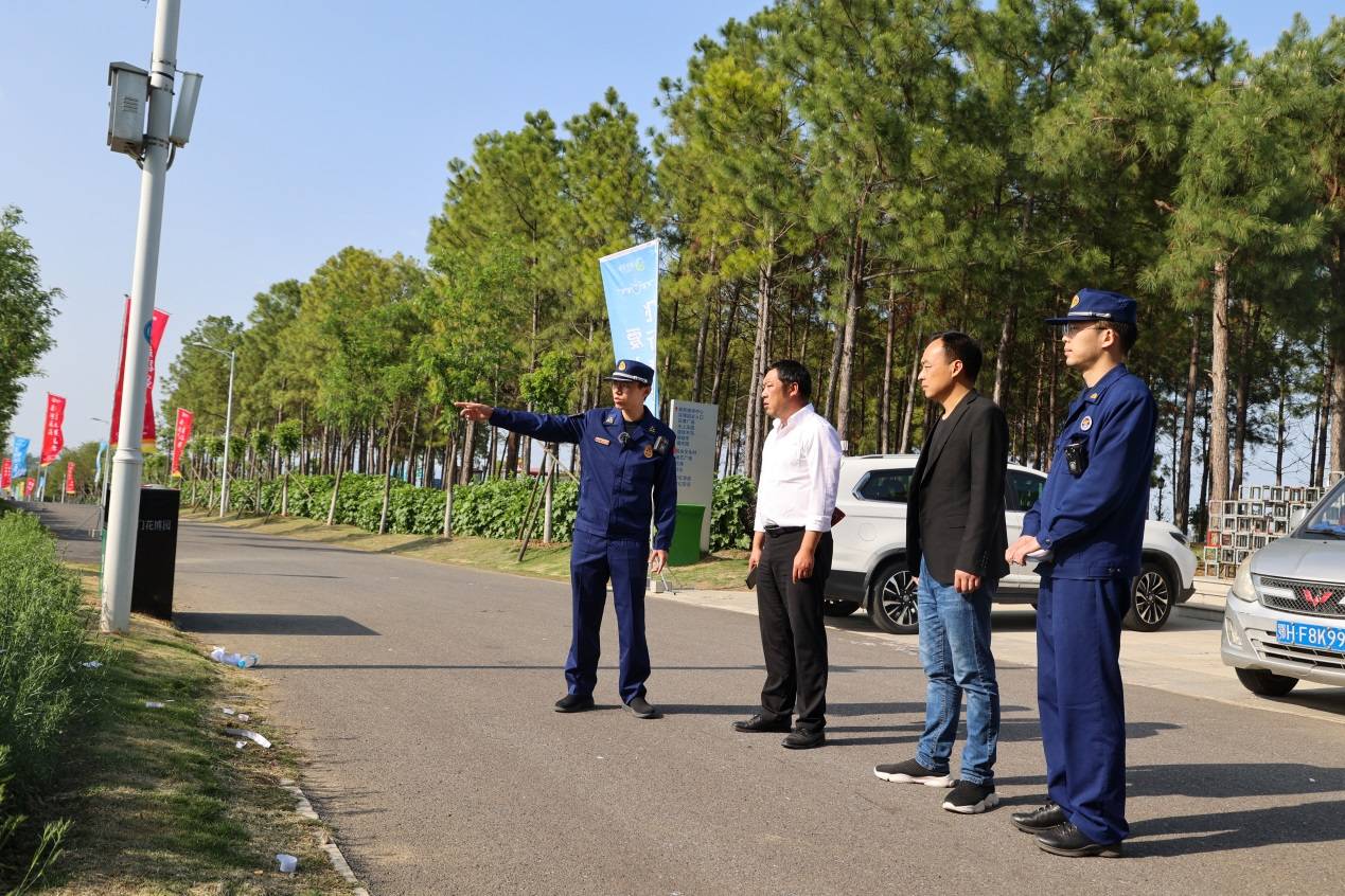 消防监督人员对荆门市花博园景区开展消防安全检查 魏欢欢/摄