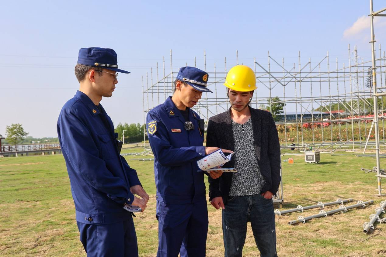消防监督人员对景区“音乐节”活动现场进行消防检查 魏欢欢/摄