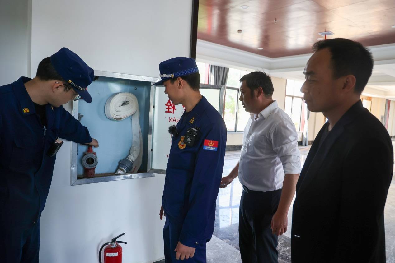 消防监督人员对景区内消防设施进行检查 魏欢欢摄