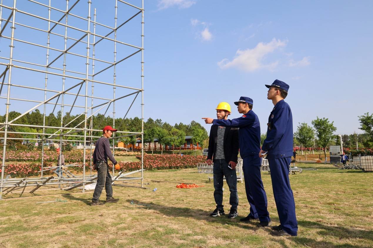 检查中,监督人员对景区内各个区域进行查看,重点检查了消防设施及消防通道,消防蓄水池、电气线路、灭火器等消防设备,查看消防控制室人员是否持证上岗,并对检查出的安全隐患提出整改意见和建议。在花博园内音乐节布展现场,消防监督员听取了园区负责人关于消防安全管理落实情况的汇报,随后深入主舞台搭建、电气线路敷设是否符合规范、安装栅栏是否影响疏散逃生、灭火器材配置是否齐全且完整好用等情况进行了现场实地检查,确保活动期间消防安全。