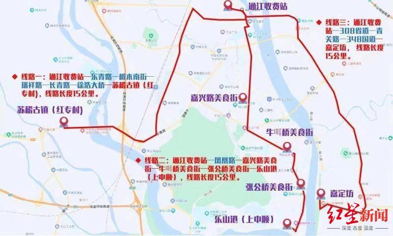 据了解,成乐高速乐山站(棉竹)出口北麓国际城临时停车场有1200个车位,绕城高速通江出口檀木嘴村临时停车场有1000个车位,绕城高速全福出口中农城临时停车场有800个车位),每个临时停车场提供免费摆渡公交车,直达各大美食街及乐山大佛景区、苏稽古镇等。