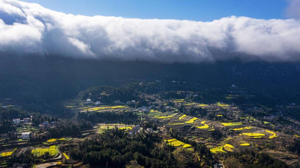 云瀑亦名瀑布云,当流云顺着风向在飘移的过程中遇到山口、悬崖或翻越山岭时,由于重力因素跌落,像水一样倾泻而下,形成云瀑,场面壮观美丽。瞿明斌/视觉中国